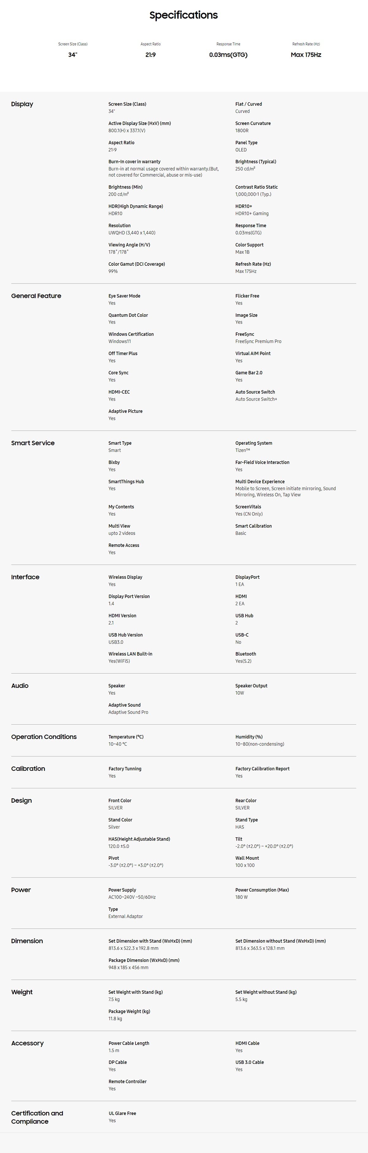 34" Odyssey OLED G8 G85SD Curved Gaming Monitor (175Hz) LS34DG852SCXXK
