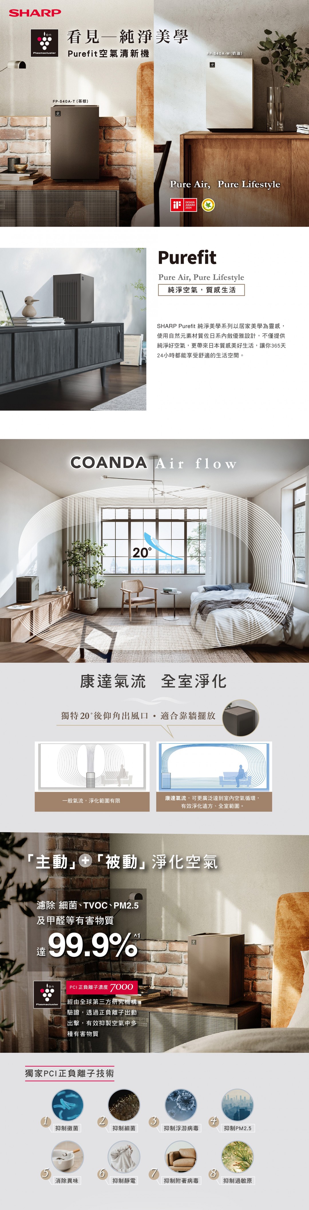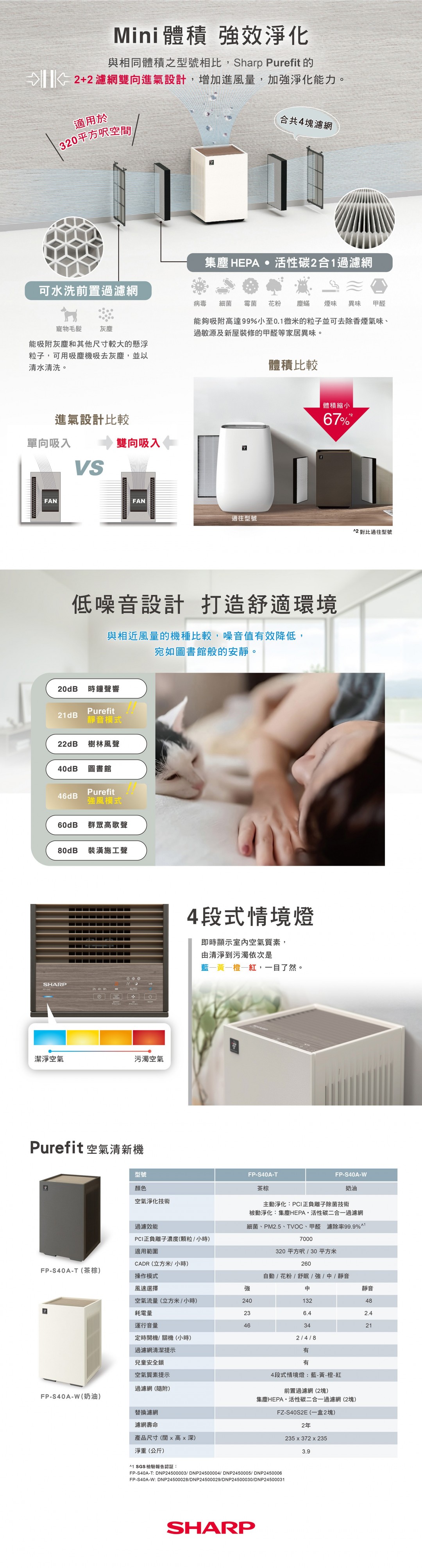 FP-S40A SHARP Purefit Mini Air Purifier -Prefilter (2pcs) & 2 in 1 HEPA and Deodorizing Filter -6 levels of fan speed