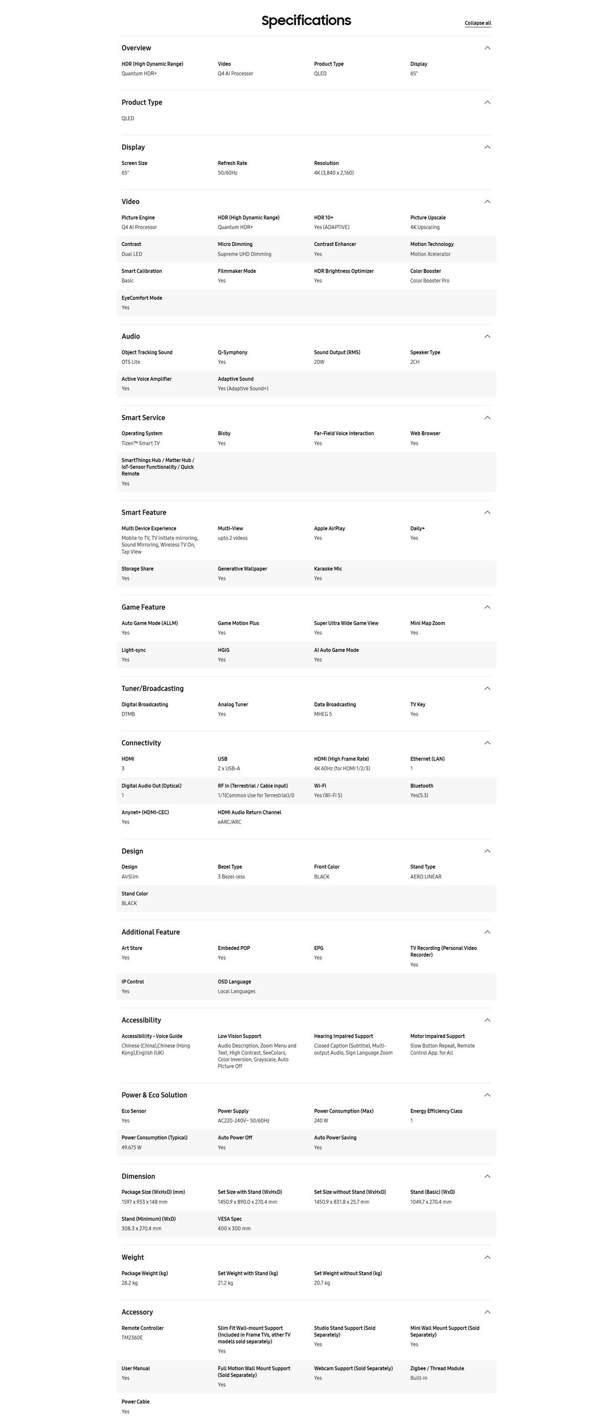 65" QLED 4K Q8FA Smart TV QA65Q8FAAJXZK 65Q8FA (Basic Installation Included)