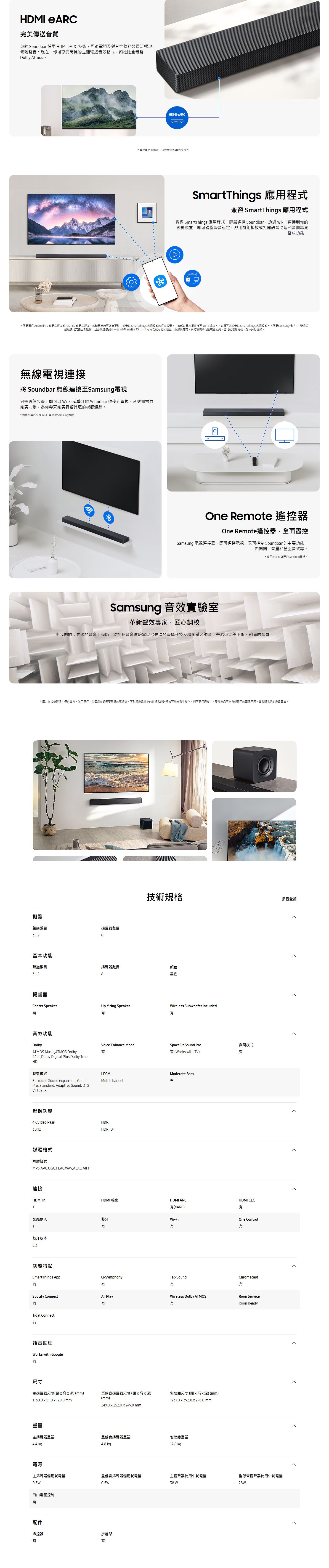 Q-series Soundbar HW-QS700F 3.1.2 ch 配重低音喇叭 (2025) HW-QS700F/ZK