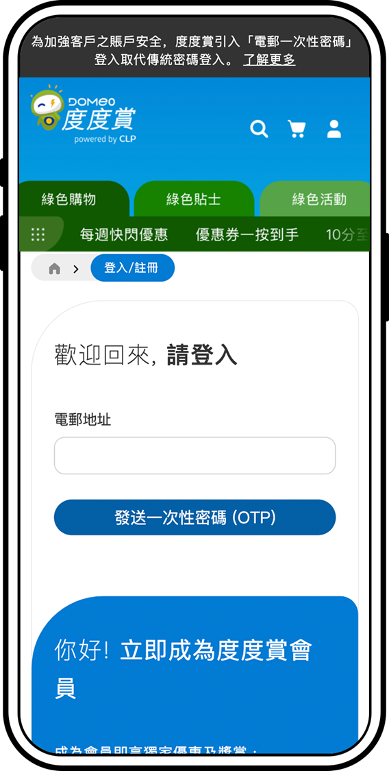 為加強客戶之賬戶安全及便捷體驗,度度賞已引入「電郵一次性密碼」登入取代傳統密碼登入,為你提供更安全的登入方式。當你登入度度賞時,將透過已登記的電郵接收 6 位數字的「一次性密碼」, 並需要輸入該密碼以進行身份驗證。