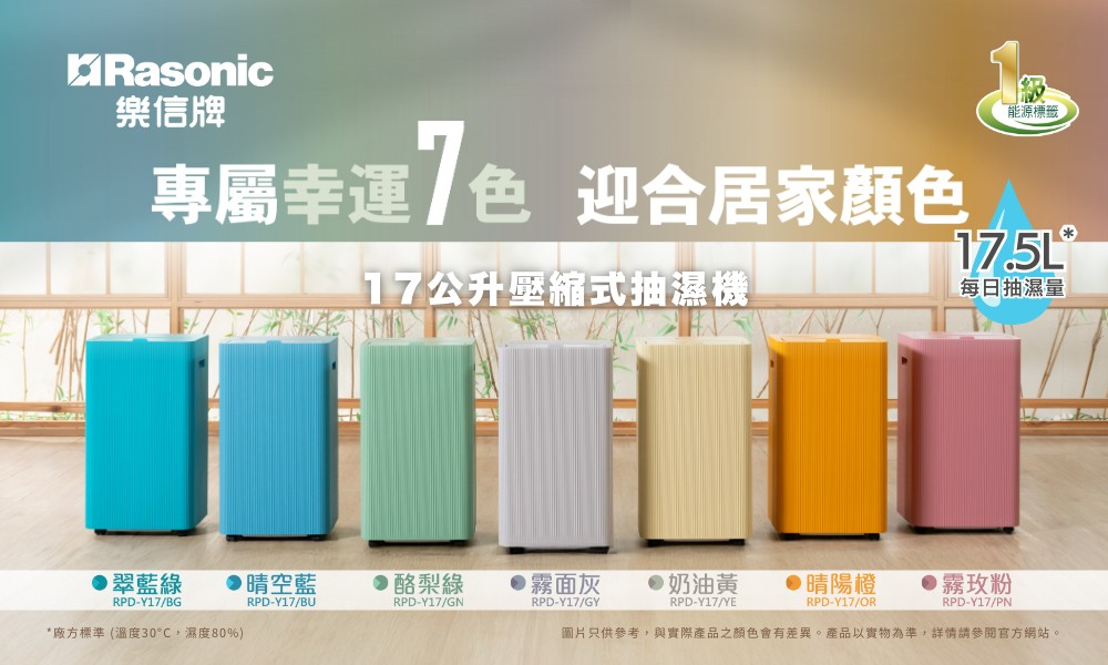 Rasonic 樂信樂信 RPD-Y17/GN 17公升 壓縮式抽濕機 (酪梨綠)RPD-Y17/GN$1,781.002,000Special Price $1,881.00 正常價格 $2,880.00